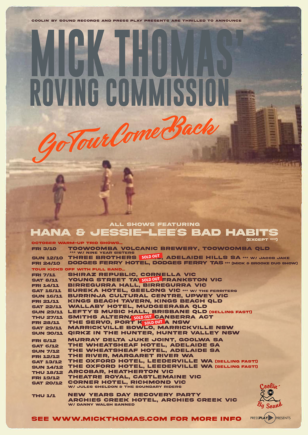 GoTourComeBack is the name of the tour as Mick and the full Roving Commission line-up head around the country beginning October/November. The dates are up on the ’shows’ page